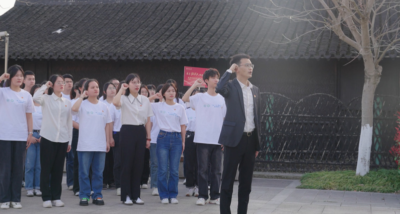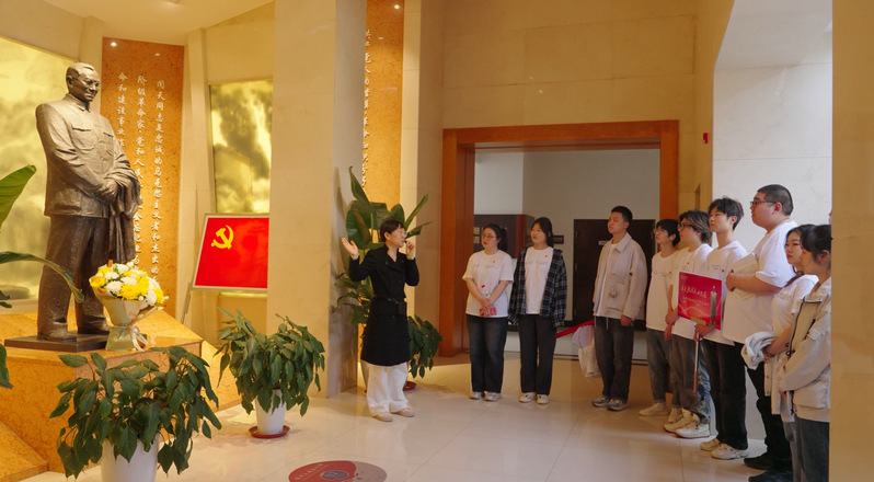 座谈交流会后,学生代表在张闻天铜像前敬献鲜花,表达对张闻天先生的尊敬与缅怀。在9778818威尼斯2021级辅导员陈鹏老师的带领下,党员同志在誓词墙前重温入党誓词,牢记初心使命。最后,同学们从张闻天的事迹中汲取力量,在故居的各个角落喊出“传承有我”的誓言,将传承闻天精神的坚定信念布满这个岁月沉淀的地方,以青年之声诉说百年星火传承。