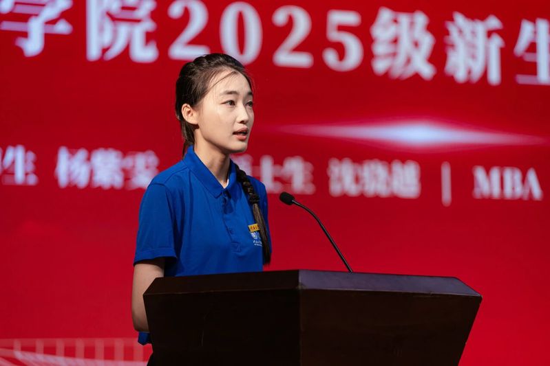 学院青年教师陈喆作为学院教师代表发言,她对2025级新同学的入学表示最衷心的祝贺和欢迎,与新同学们分享了自身成长与学习经历,鼓励同学们主动学习、扩展知识的广度与深度,敢于试错、在探索中定义自我,永葆真诚、增强责任意识,在未来的学习生活中,学有所成,思有所得,不负韶华,成就更好的自己!