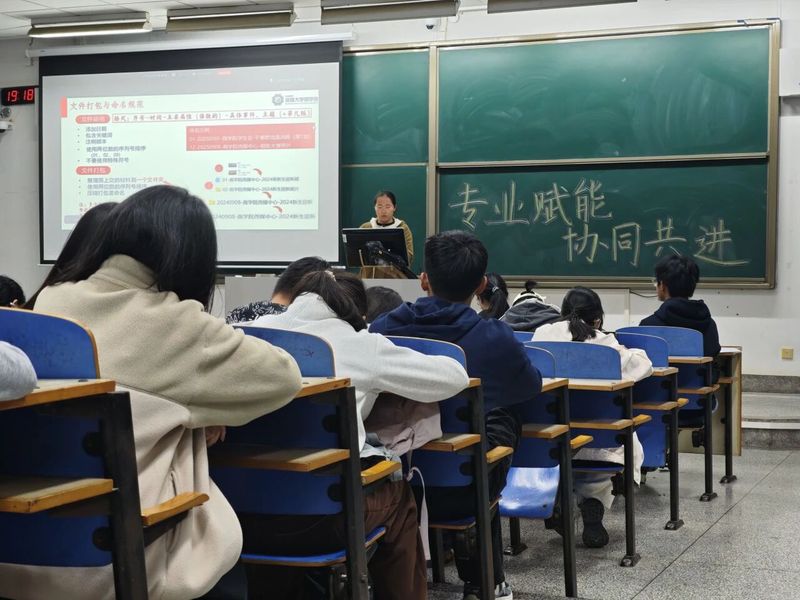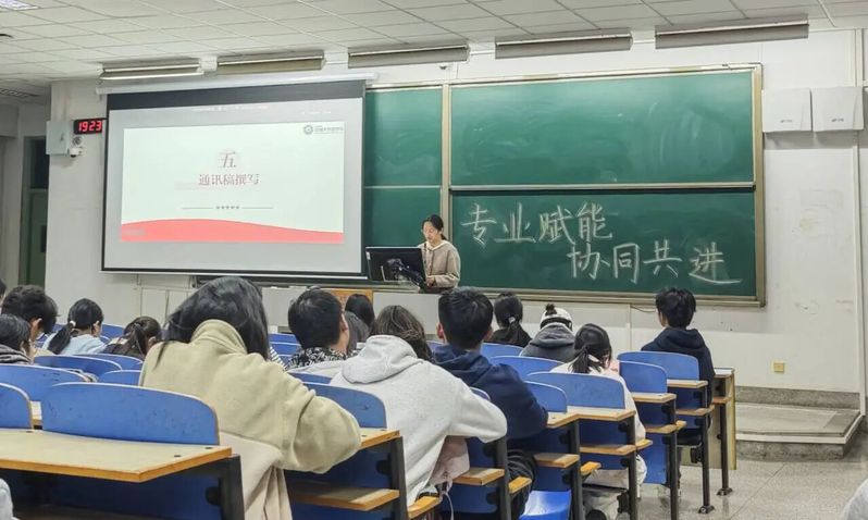 编辑部负责人钱雨彤同学聚焦“通讯稿撰写”交流分享,内容涵盖稿件结构、撰写技巧、稿件格式等。她从标题、导语、正文到结语的写作范式,结合活动、会议、竞赛等不同类型稿件的侧重点,进行了深入浅出的讲解,引导同学们学会用精炼、专业、动人的笔触,传播商院声音。