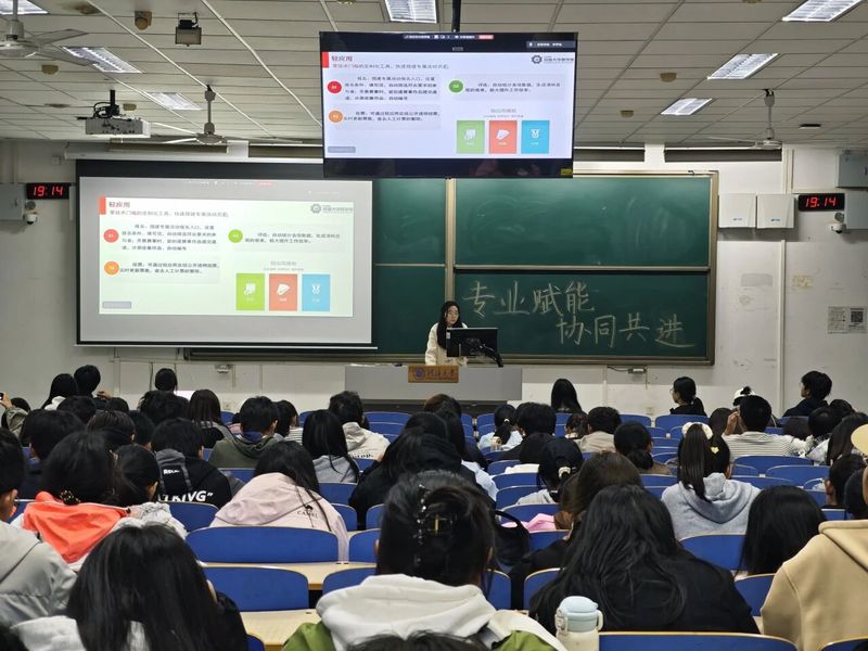 品宣部负责人傅俊颖同学分享了“照片拍摄与海报制作”的技巧。在摄影方面,她介绍了活动中的近景、中景、远景及合照的拍摄要点,以及如何正确使用构图法则,实现更好的色彩层次搭配。在海报设计环节,她通过案例的直观对比,从海报风格、文字排版、素材放置到整体布局,层层剖析。