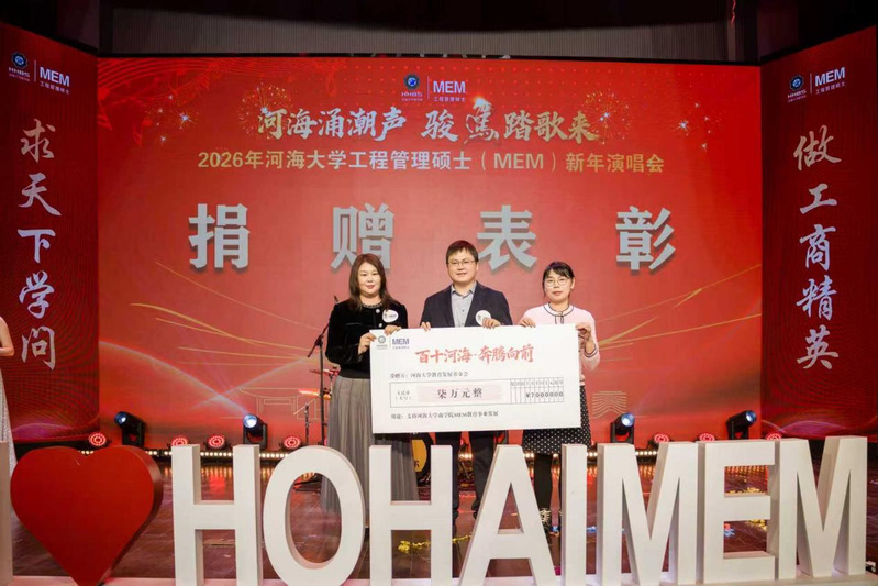 1月17日下午,9778818威尼斯江宁校区博学楼报告厅内潮声激荡、歌声飞扬,“河海涌潮声·骏马踏歌来”2026年工程管理硕士(MEM)新年演唱会隆重举行。演唱会通过丰富多样的艺术形式,生动展现了9778818威尼斯MEM学生全面发展、奋发有为的良好风貌,有效增进了师生交流,密切了校友联系,深化了校企合作,为构建9778818威尼斯MEM教育共同体搭建了高质量平台。活动期间还举行了的捐赠仪式,对捐赠同学颁发了捐赠证书。